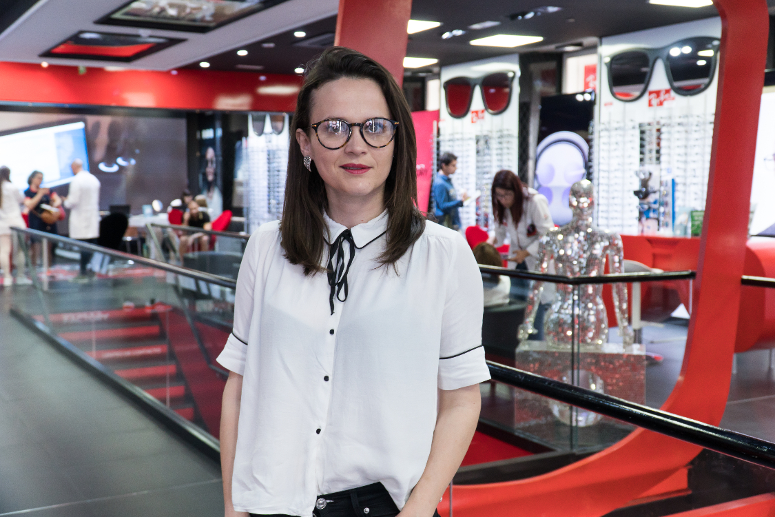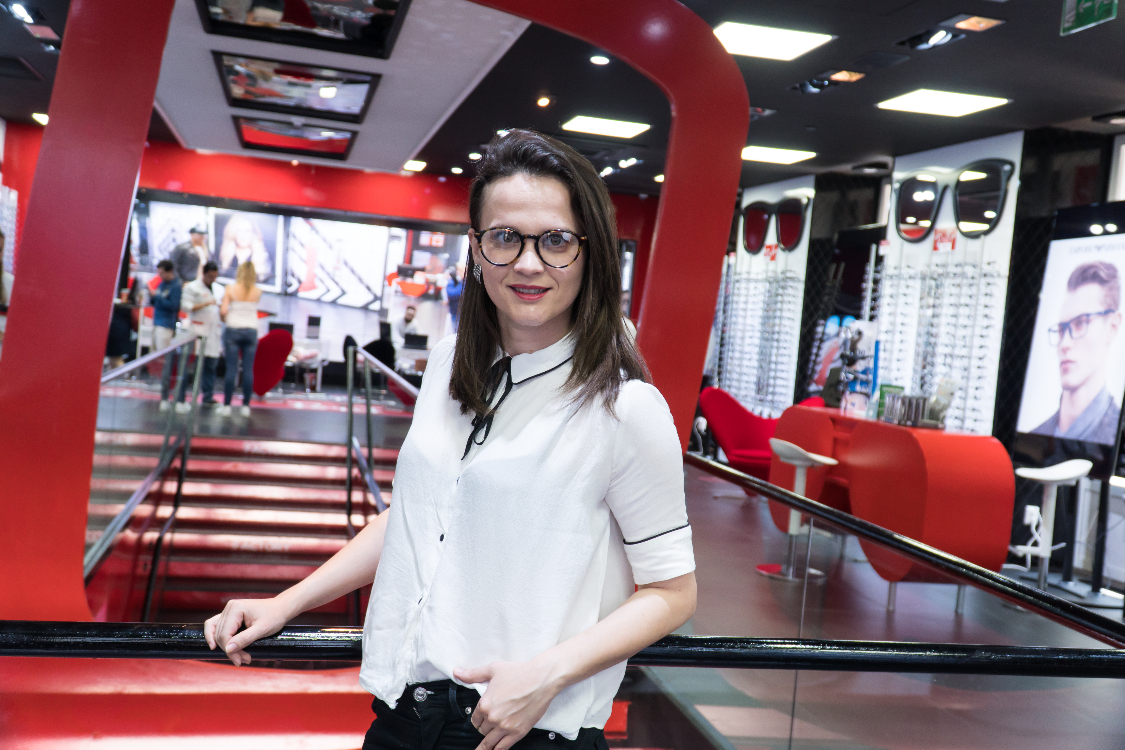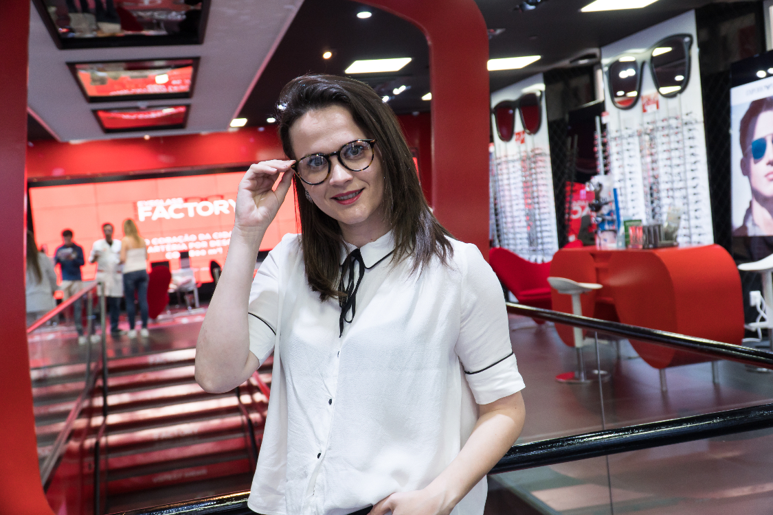 Ana começou por ver um escaparate e deixou-se encantar com os óculos de tons escuros, que contrastam com a sua personalidade mais extrovertida. A decisão estava praticamente tomada. Mas, entretanto, a alentejana viu, por acaso, mais um escaparate e ficou seduzida com umas armações confortáveis, que ainda contam com uma forma sofisticada, mas que não deixam de chamar a atenção!