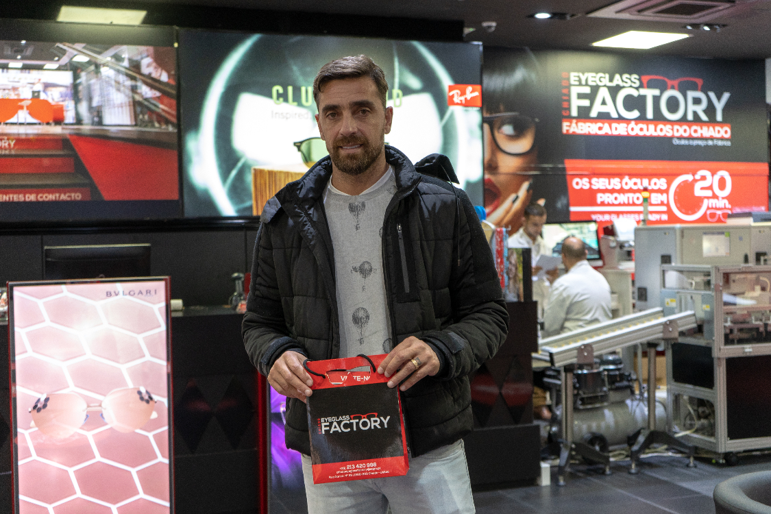 Acompanhado pelo presidente do Sporting, Frederico Varandas, que também quis conhecer de perto a Official Eyeglass Partner do Clube, Beto ainda pôde comprovar com os seus próprios olhos que nessa ótica é possível graduar óculos em apenas 20 minutos.
