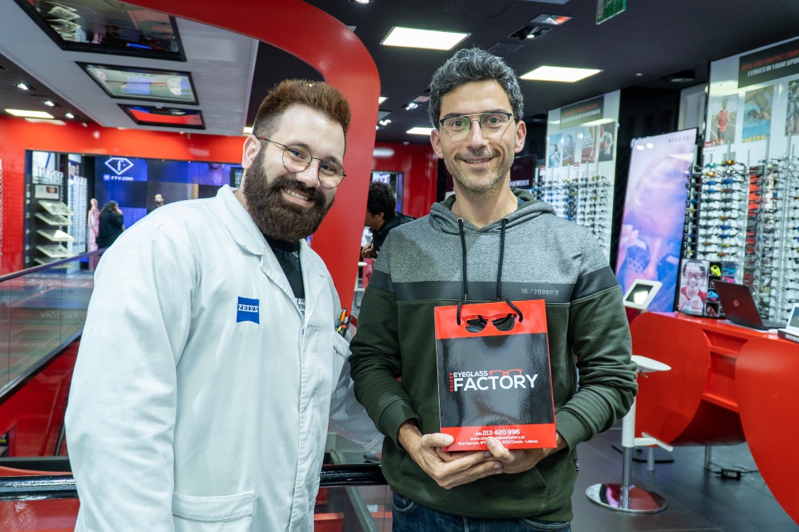 E há ainda mais três motivos para se ficar mal habituado com a Chiado Eyeglass Factory. Por um lado, existirá ótica com melhor acessibilidade? O ator explica: “Temos um metro à porta. E, além disso, está numa rua – a Rua Garrett – aonde toda a gente vai, nem que seja para ir às compras, para dar um passeio, para visitar a estátua do Fernando Pessoa…”. Por outro, a variedade de óculos foi um regalo para a vista de Pedro Luzindro, que ficou rendido à marca Sunoptic. “Nem eu sabia que havia tantos modelos de óculos no mundo!”, exclamou. Finalmente, o ator destacou o serviço “fantástico e simpático” da Chiado Eyeglass Factory.