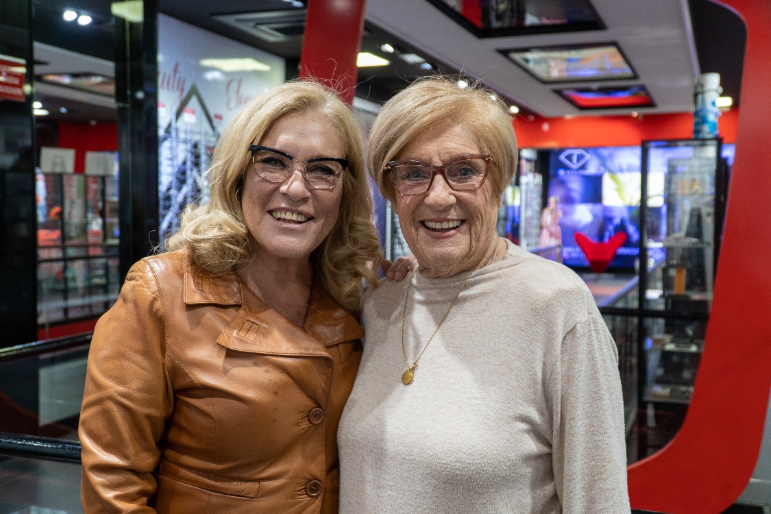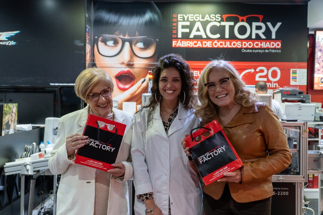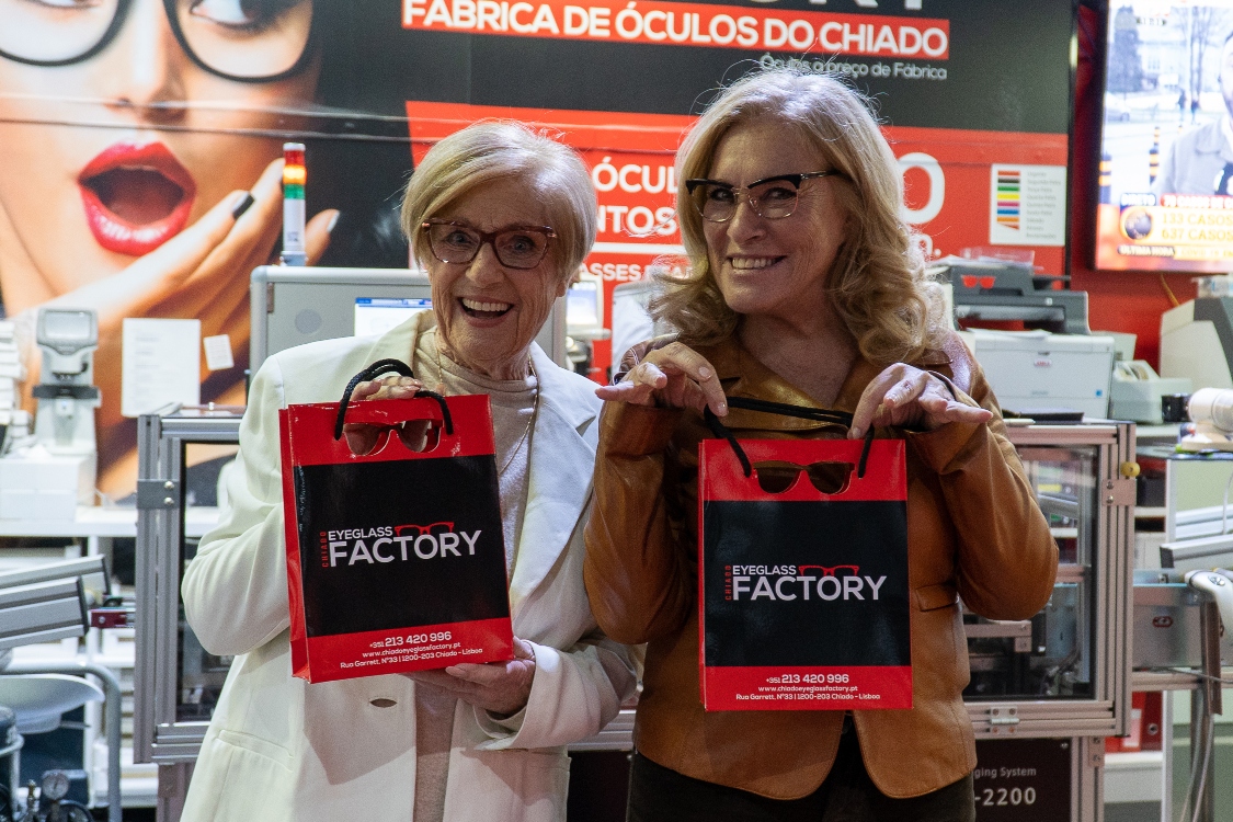Quem visita a Chiado Eyeglass Factory volta sempre. É o caso de Teresa Guilherme e da mãe, Lídia Ribeiro. E os motivos para o regresso vão muito para além do óbvio. É claro que ambas reconhecem a oferta diversificada da ótica. “Há muita dificuldade na escolha, porque existe tanta coisa que uma pessoa até se perde. Há uma escolha interminável, o que é bom, porque saímos exatamente com o que nos fica bem”, afirma a apresentadora. “Aqui, a dificuldade é a fartura!”, completa Lídia.