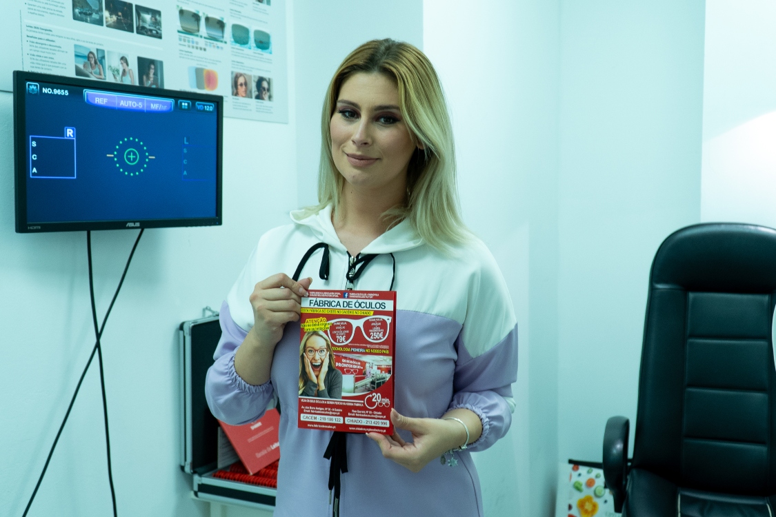 Aí, Bernardina avaliou a visão, numa consulta gratuita. Aliás, essa vantagem tanto existe na ótica do Chiado, como na Fábrica de Óculos do Cacém, e merece muitos elogios da parte da mãe de Kévim e Kyara: “É uma ótima iniciativa, porque há muitas pessoas que têm problemas na visão, mas, devido a questões financeiras, não conseguem marcar uma consulta. É uma mais-valia, sem dúvida.”